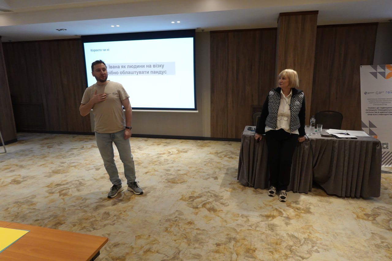 …Ще один ключовий блок тренінгу був присвячений потребам людей з інвалідністю та бар’єрам у громаді. Учасникам запропонували задуматися, а чи достатньо добре вони розуміють людей з інвалідністю та знають їхні першочергові потреби. Що, наприклад, інвалідність — це не характеристика людини, а результат її взаємодії з недоступним середовищем. Обговорювалися типові бар’єри на шляху цих людей: відсутність альтернатив інтернатному догляду, недоступність транспорту й публічних послуг, формалізм процедур та стигматизація. Окремий акцент було зроблено на коректній комунікації та простій мові як щоденних інструментах безбар’єрності.