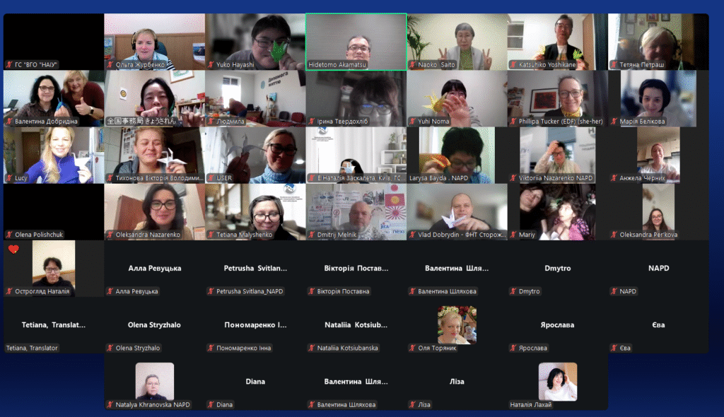 До зустрічі долучилися діти й дорослі, представники організацій людей з інвалідністю, партнери та друзі Національної Асамблеї людей з інвалідністю України (НАІУ). Разом вони складали журавликів — таких самих, які японські друзі надіслали до України як знак підтримки та побажання миру.