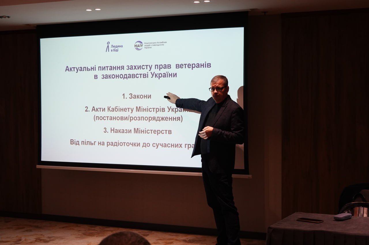 У межах тренінгу виступив Павло Ждан, юрист НАІУ, який детально зупинився на питаннях соціально-правового захисту ветеранів, типових правових пастках і механізмах захисту прав у взаємодії з державними органами.